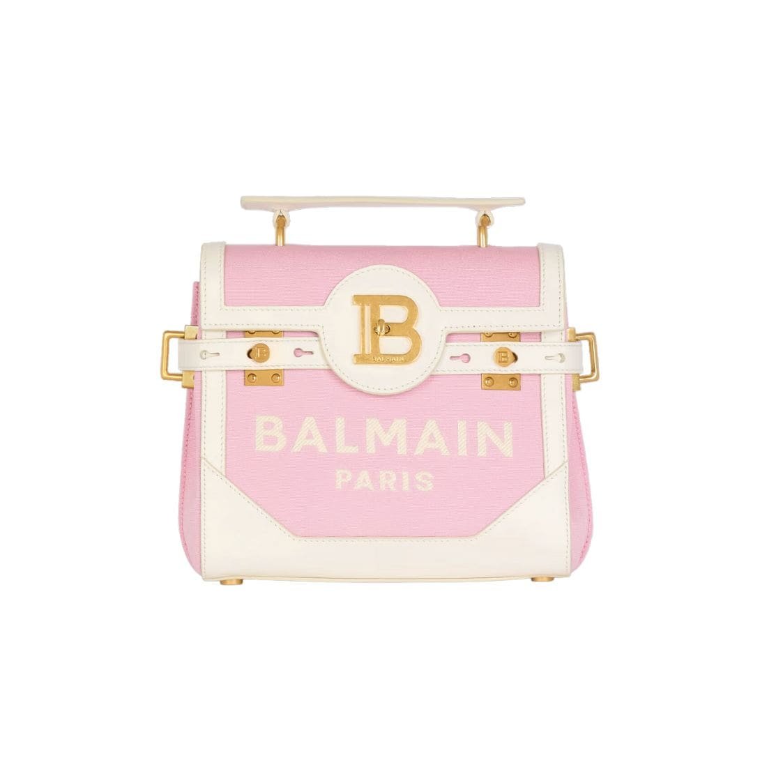 Introducing the Balmain B-Buzz 23 canvas and leather bag, combining canvas and calfskin for a sophisticated look. It offers flexible carrying options: by hand, on the shoulder, or across the body. The bag features a leather handle and a detachable leather strap with engraved snap hooks. Secured with a flap and quarter-turn B-Twist clasp. There’s a convenient patch pocket at the back. Inside, find a zipped pocket and a leather card pocket, all lined with smooth leather. Metal bag feet protect the base. Golden hardware adds a touch of elegance. The bag measures 23 x 20 x 11 cm, with a shoulder strap length of 110 cm. Made in Italy with the main material being 100% cotton. Item code: CN4DB530TCDY.