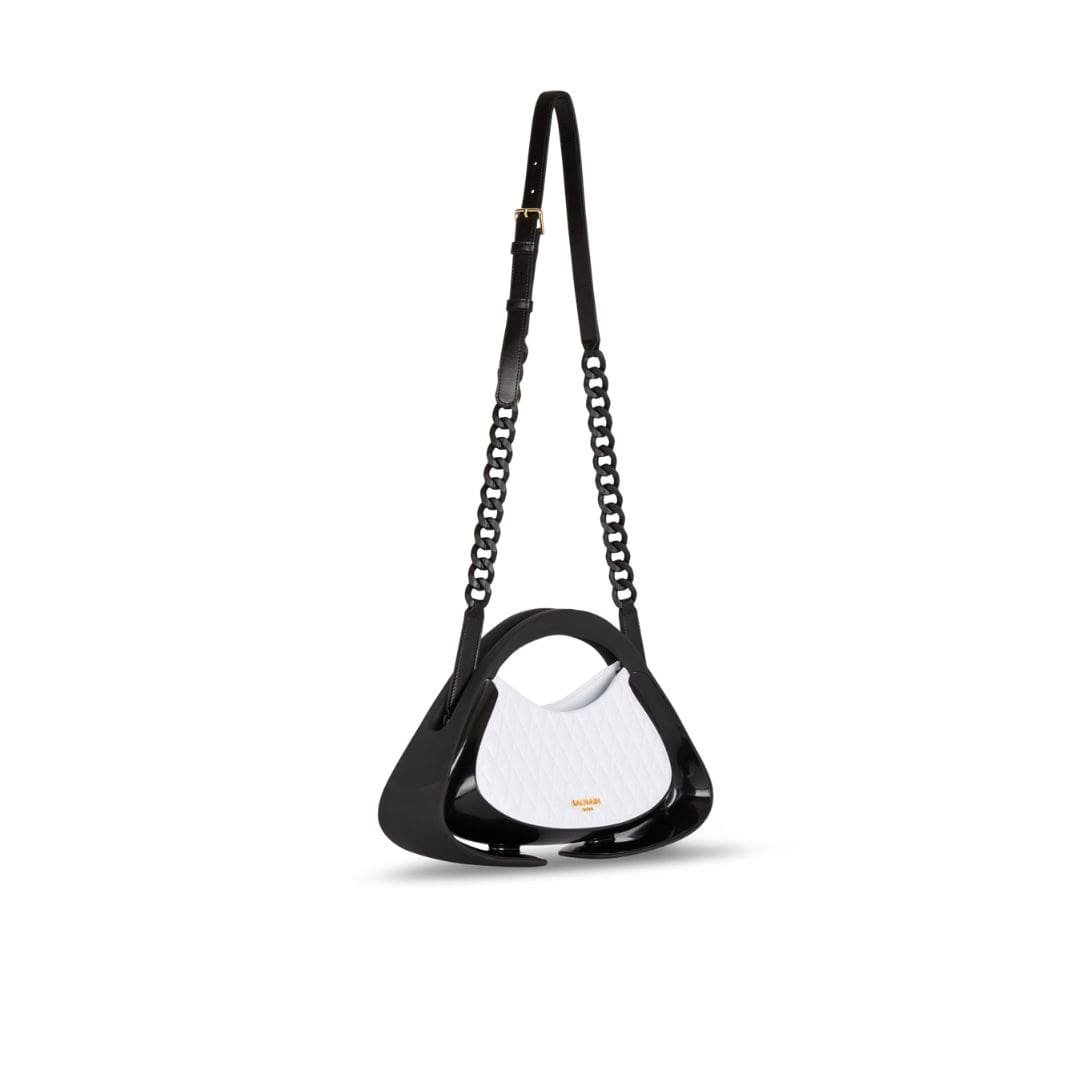 Introducing the versatile balmain Jolie Madame medium bag, designed to adapt seamlessly to your style needs. Whether you prefer carrying it gracefully in hand, slinging it over your shoulder, or wearing it across the body, this bag offers the flexibility you crave.