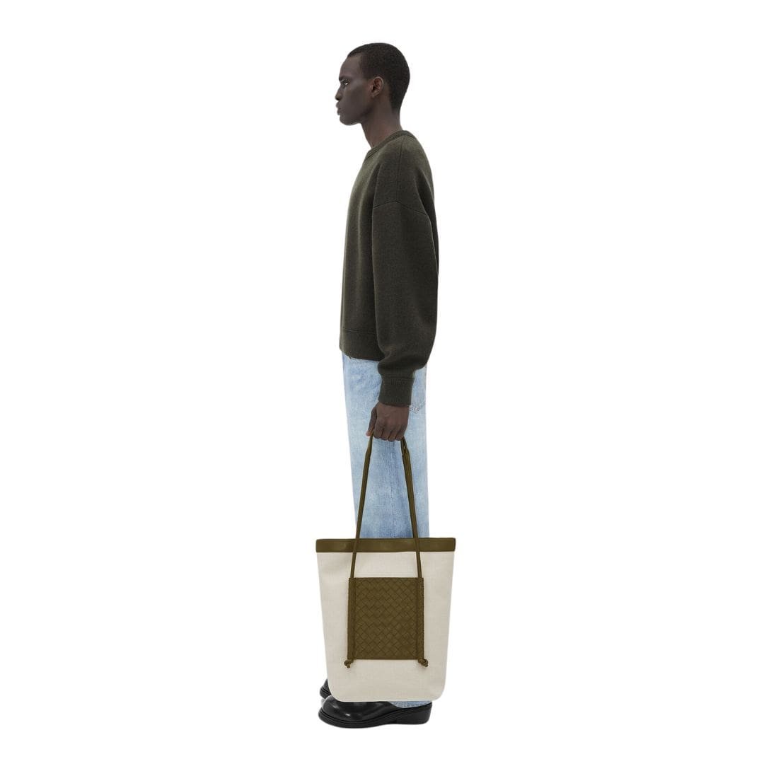 Constructed from premium leather, the tote features Bottega Veneta’s signature Intrecciato weave, showcasing the brand’s unparalleled expertise in leatherworking. This intricate weaving technique not only adds a unique texture and visual appeal but also ensures the bag’s durability and resilience. The leather’s supple yet sturdy quality makes the tote a practical choice for daily use, while its sophisticated design ensures it remains stylish and timeless.