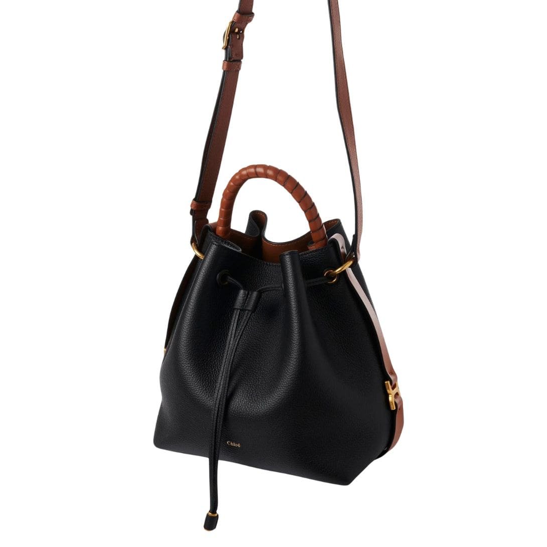 Introducing a contemporary twist to the iconic Marcie line, the Maison unveils its latest addition: the CHLOE Marcie Bucket Bag Black. Crafted from Chloé’s renowned soft, grained calfskin, this modern-day companion epitomizes the brand’s commitment to quality and sophistication. With its spacious main compartment secured by a leather drawstring closure, this bucket bag offers both style and practicality for the modern woman on the go.
