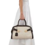 A tonal leather fob adorns the rigid top handle, serving as a subtle embellishment and a testament to Ferragamo’s commitment to exquisite craftsmanship. Meanwhile, rectangular foot studs provide protection and reinforce the bag’s iconic status, ensuring it stands the test of time with grace and resilience.