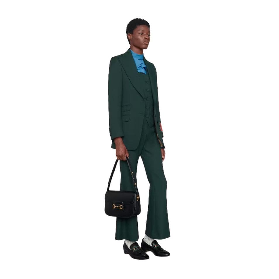 The Horsebit 1955 Shoulder Bag is designed with both style and functionality in mind. Its structured silhouette provides ample space for essentials, while the interior is thoughtfully organized with multiple compartments to keep belongings in order. The bag is equipped with an adjustable leather shoulder strap, allowing for versatile wear options—whether draped elegantly over the shoulder or carried crossbody.