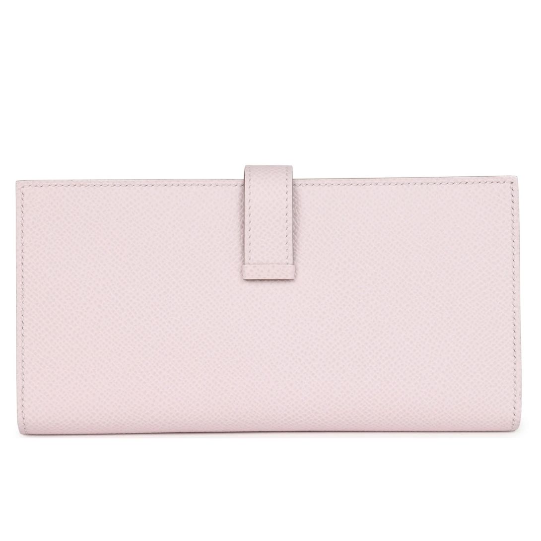 This Bearn Gusset Long Wallet in Mauve Pale Epsom leather with palladium hardware is a sleek and timeless accessory, showcasing Hermès’ renowned craftsmanship and understated elegance.
