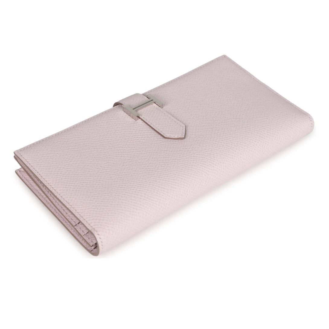 HERMÈS BEARN GUSSET LONG WALLET MAUVE PALE EPSOM PALLADIUM HARDWARE