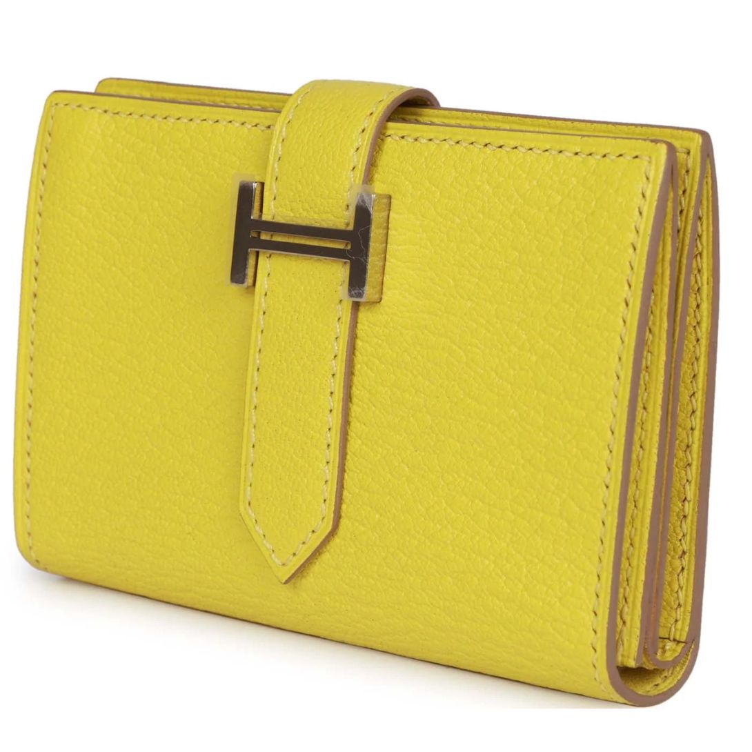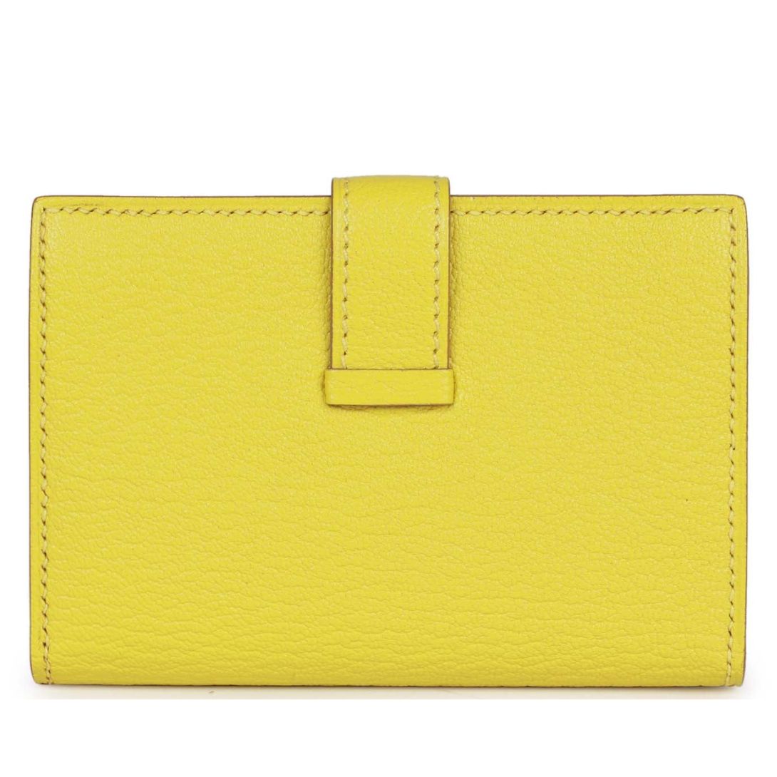 HERMÈS BEARN MINI WALLET LIME CHEVRE MYSORE PALLADIUM HARDWARE