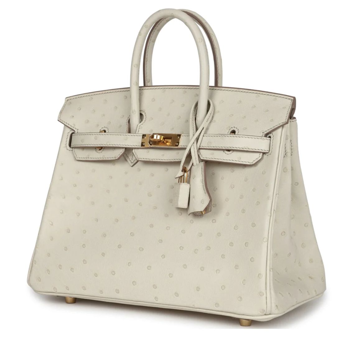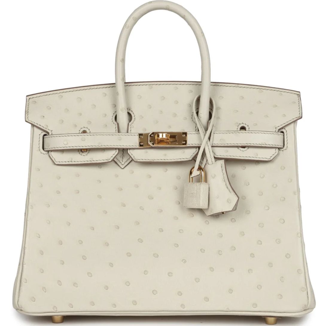 HERMÈS BIRKIN 25 BETON OSTRICH GOLD HARDWARE