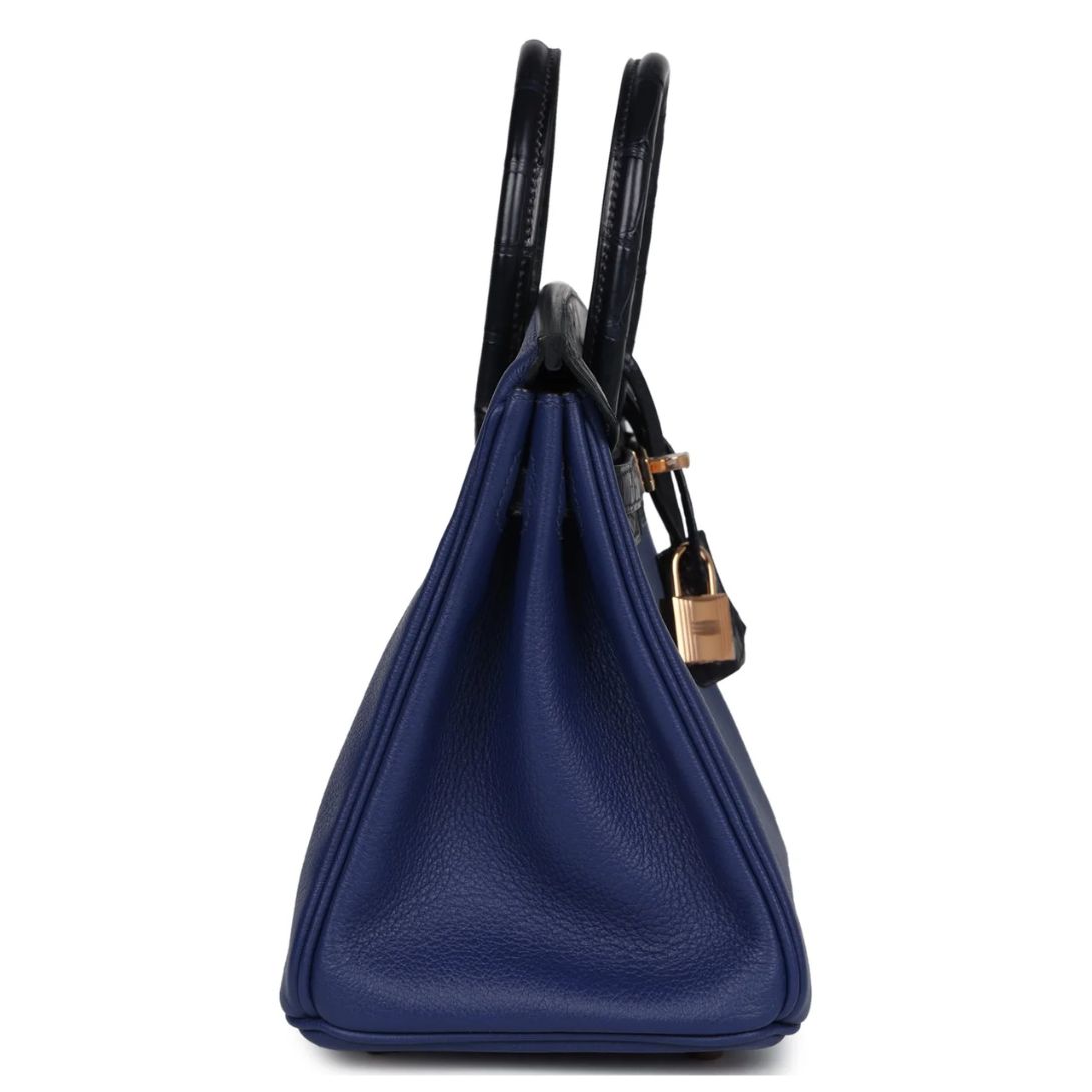 HERMÈS BIRKIN 25 BLEU SAPHIR TAURILLION NOVILLO AND BLEU MARINE MATTE ALLIGATOR TOUCH ROSE GOLD HARDWARE