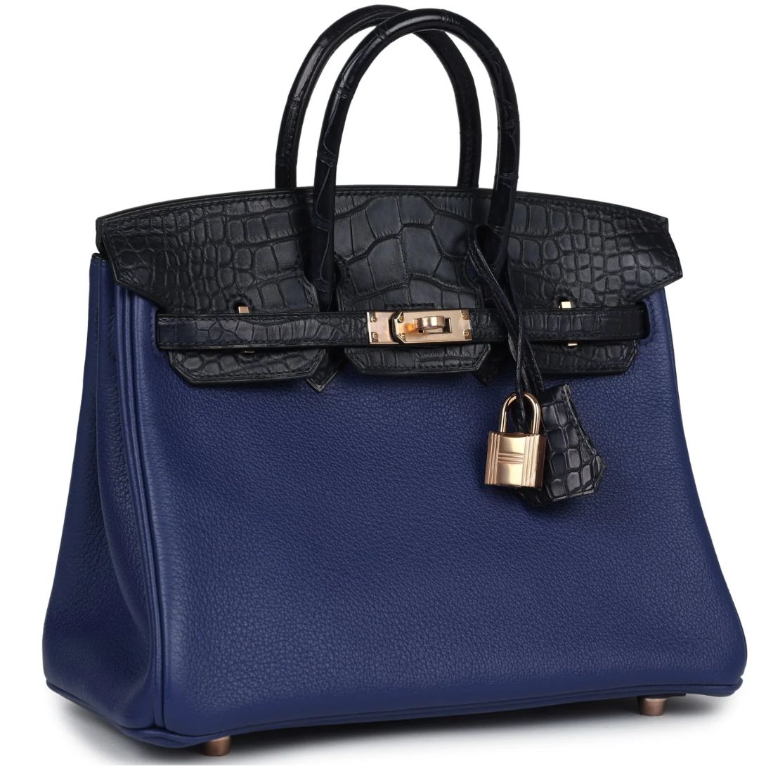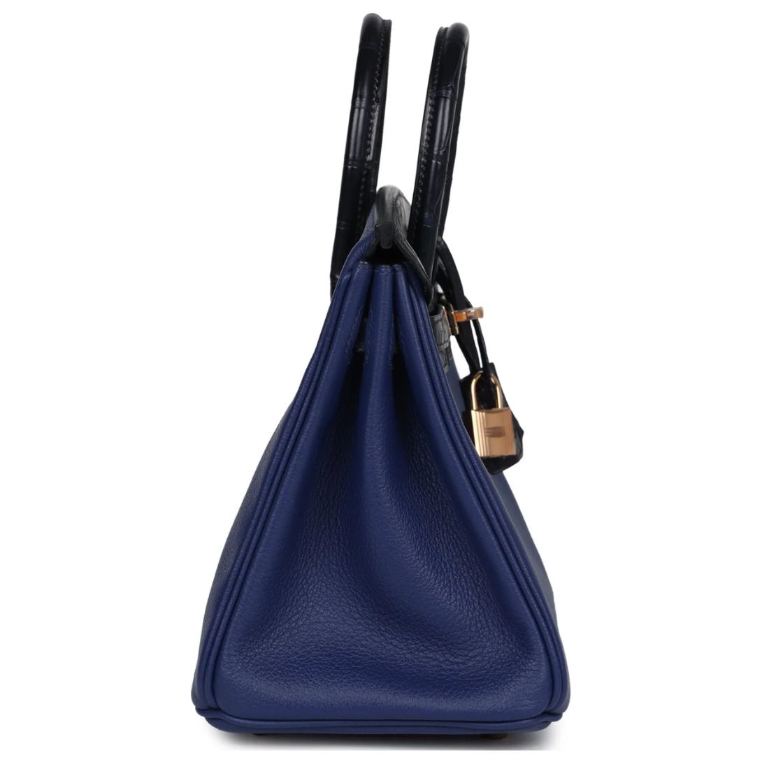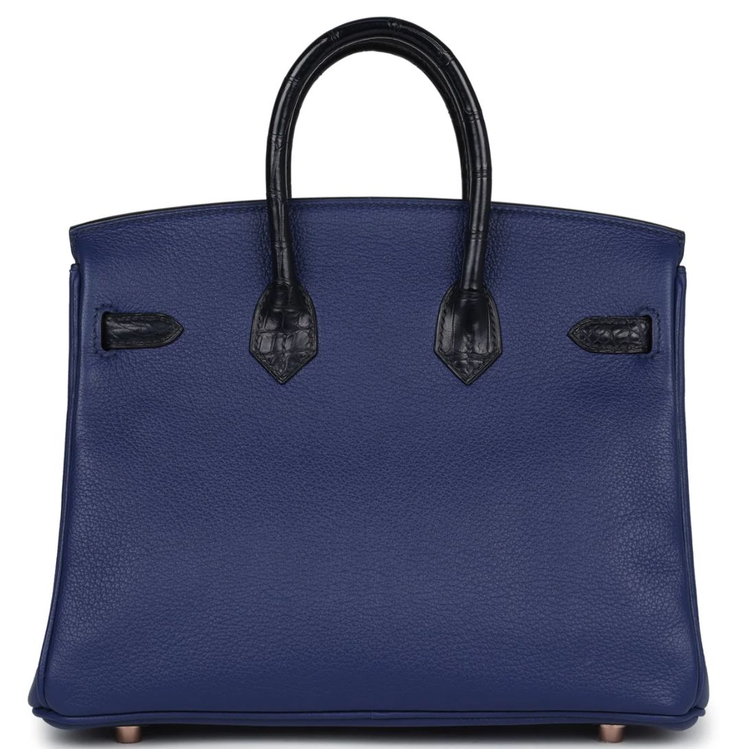 HERMÈS BIRKIN 25 BLEU SAPHIR TAURILLION NOVILLO AND BLEU MARINE MATTE ALLIGATOR TOUCH ROSE GOLD HARDWARE
