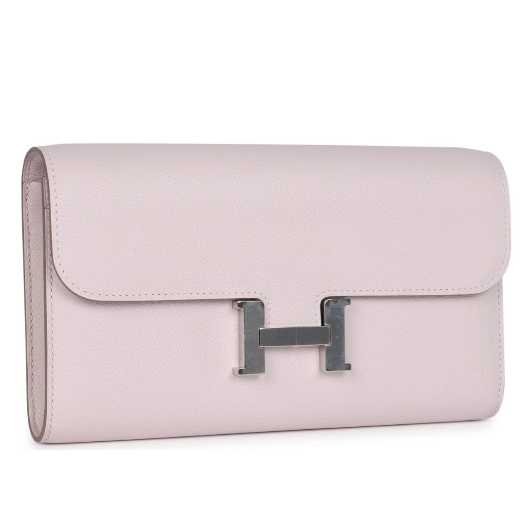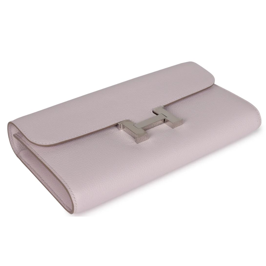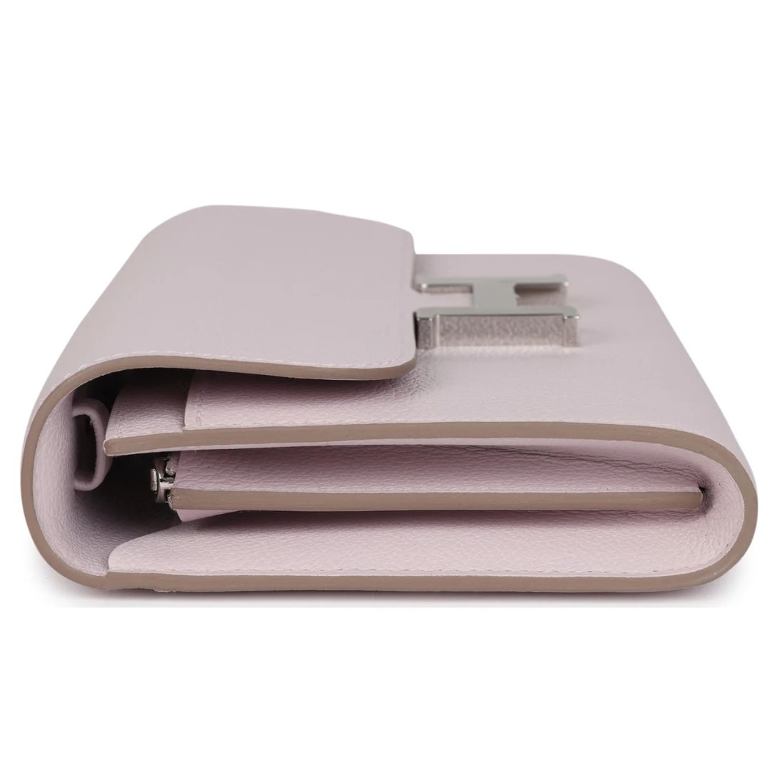 HERMÈS CONSTANCE WALLET TO GO MAUVE PALE EVERCOLOR PALLADIUM HARDWARE
