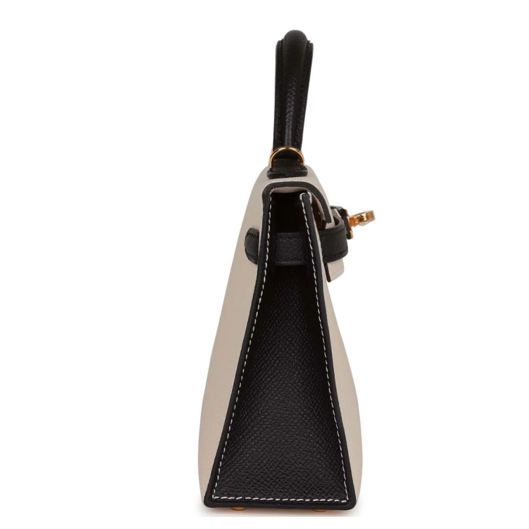 HERMÈS SPECIAL ORDER (HSS) KELLY SELLIER 20 CRAIE AND BLACK EPSOM GOLD HARDWARE