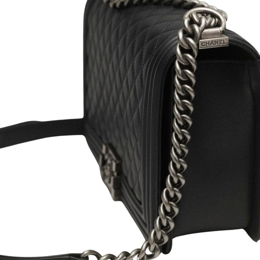The hardware, typically in gleaming gold or silver tones, adds a striking contrast to the bag’s supple leather or rich tweed construction. The iconic Boy clasp, inspired by the hardware on men’s jackets, serves as a symbol of Chanel’s heritage and innovation.