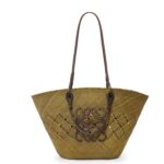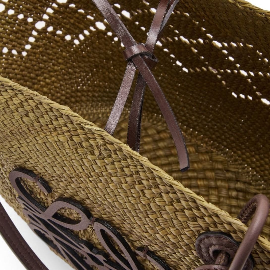 LOEWE ANAGRAM BASKET BAG IN IRACA PALM AND CALFSKIN