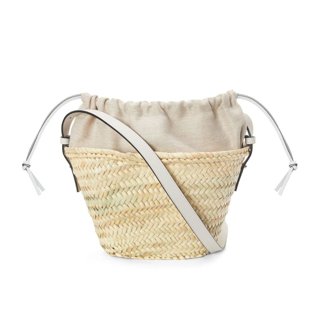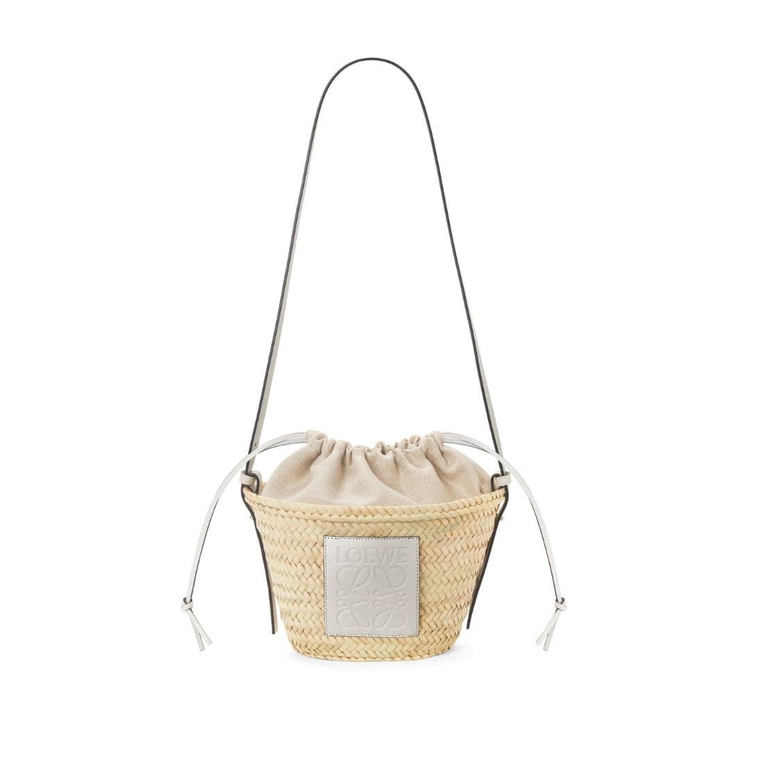 LOEWE BUCKET BAG WITH DRAWSTRING IN PALM LEAF AND CALFSKIN