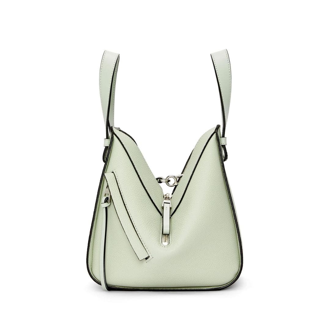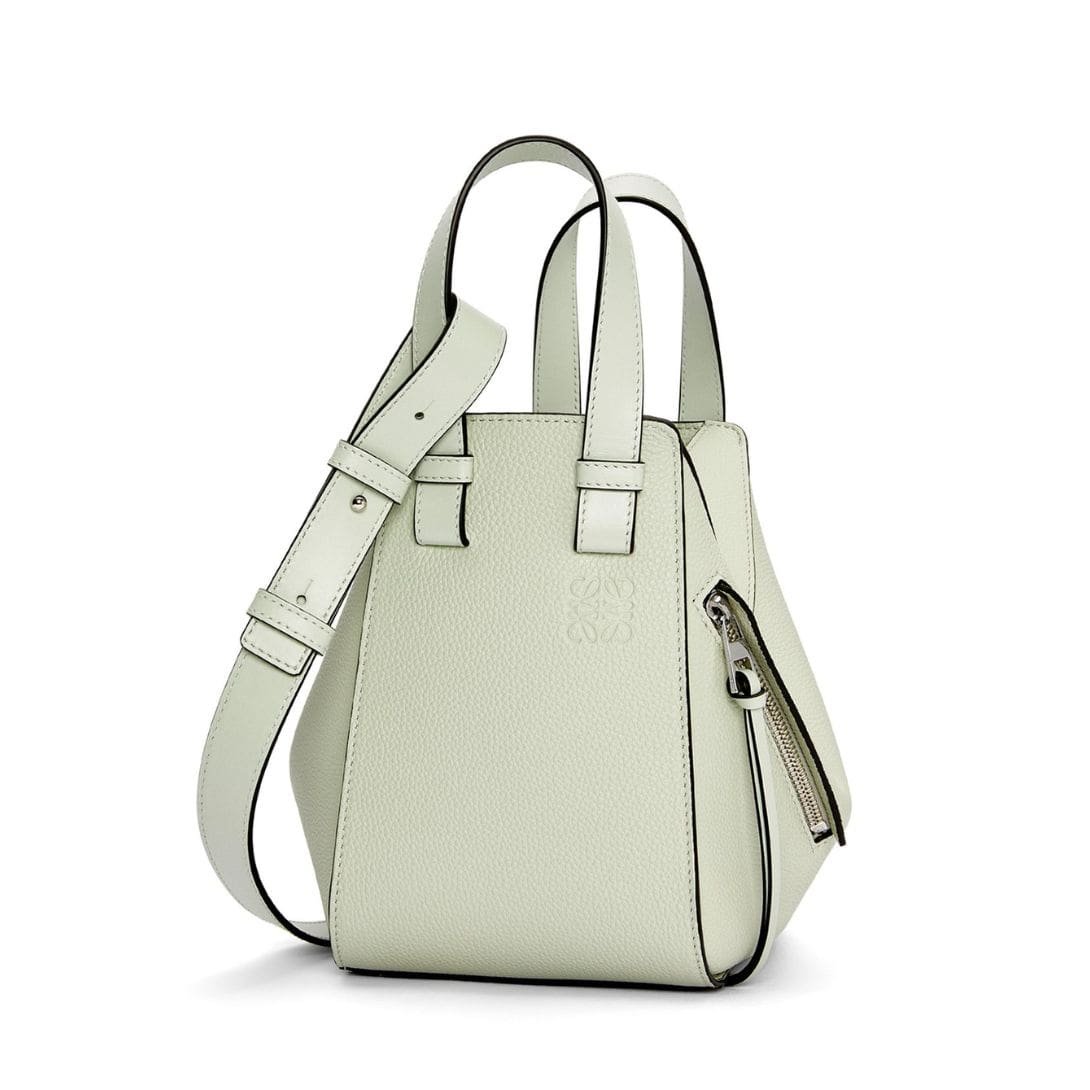 The LOEWE Compact Hammock Bag In soft grained calfskin leather. This premium material offers a sophisticated and textured finish, ensuring both durability and elegance, making it an essential addition to any fashion-forward wardrobe.