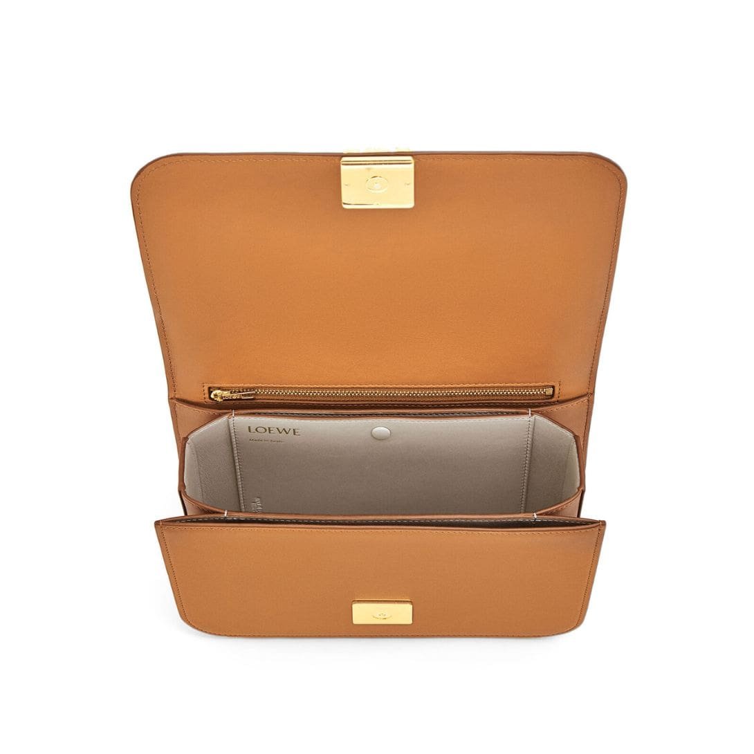 The Goya Bag’s minimalist design is complemented by its meticulous craftsmanship. The soft calf leather exterior is accentuated by subtle stitching and high-quality hardware, reflecting LOEWE’s commitment to superior design and construction. The interior is equally well-crafted, featuring organized compartments that help keep your belongings in order.