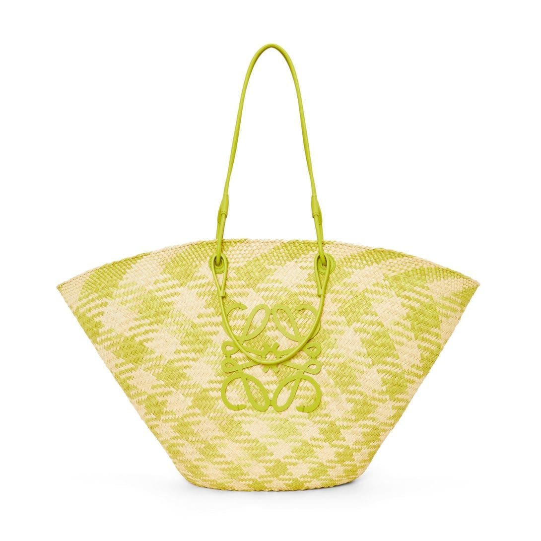 LOEWE LARGE ANAGRAM BASKET BAG IN IRACA PALM AND CALFSKIN