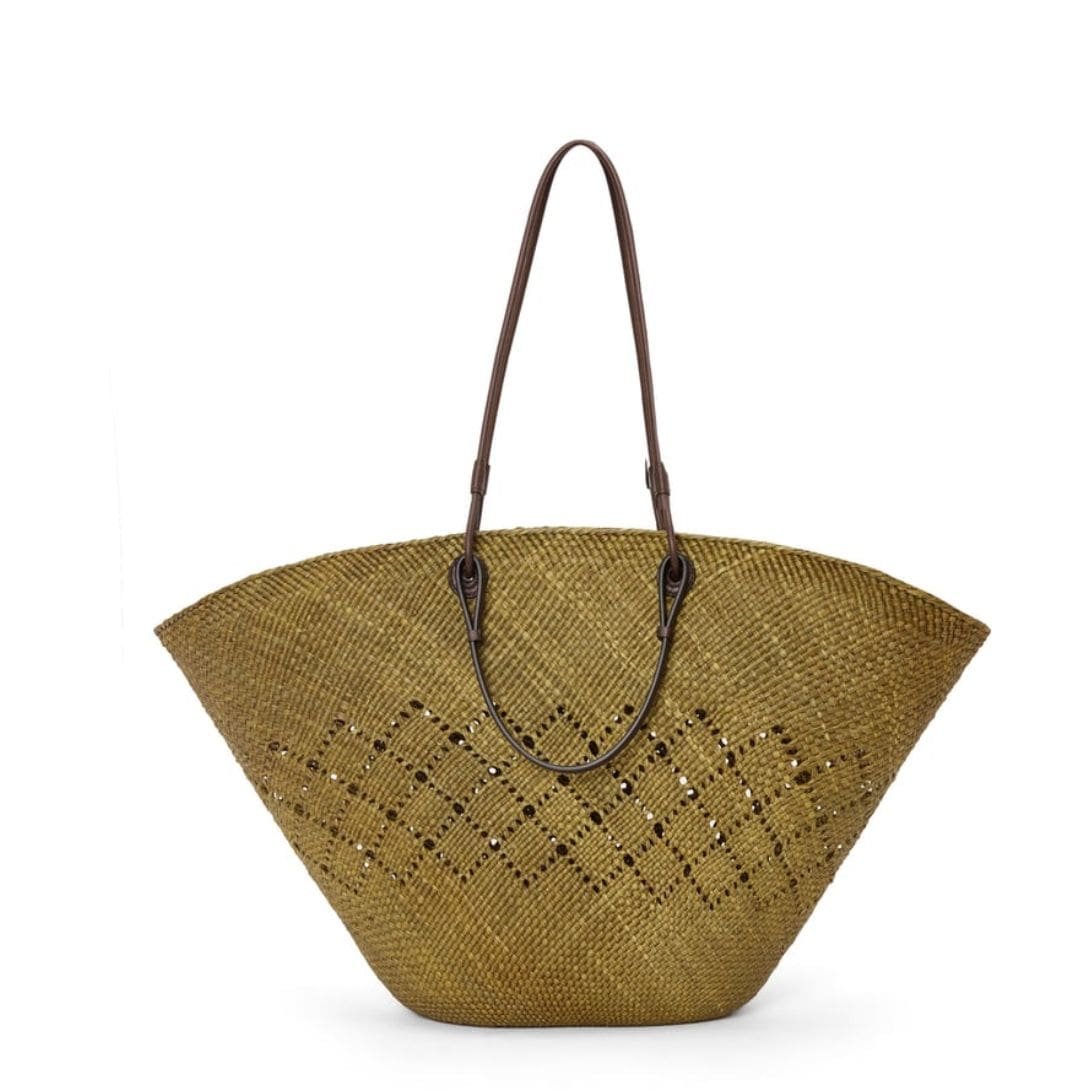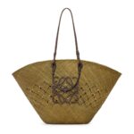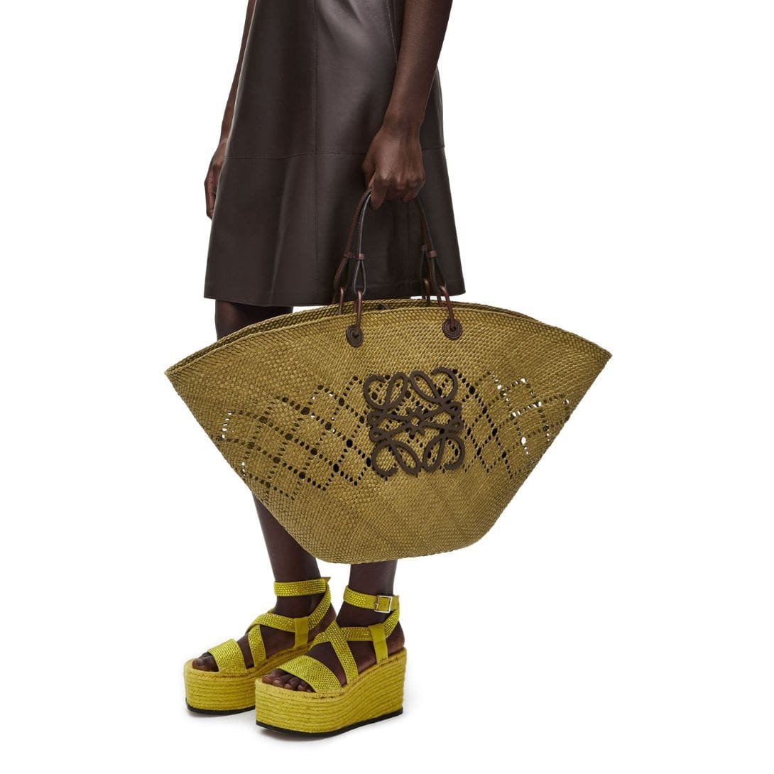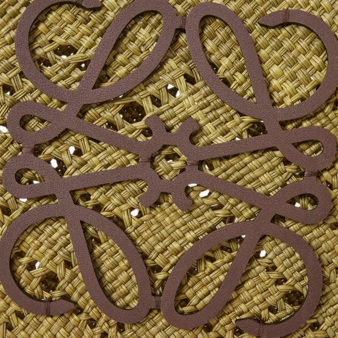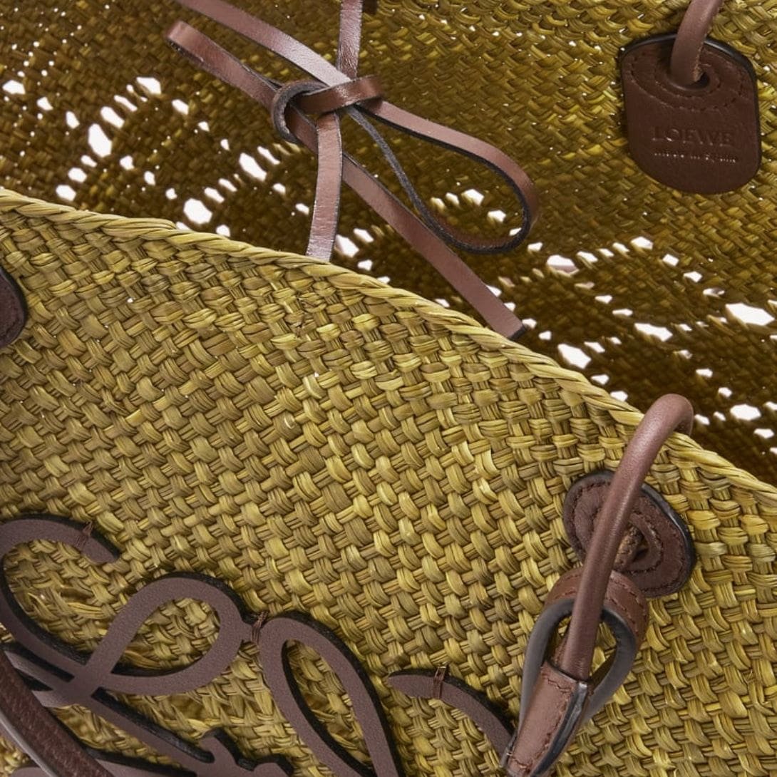 LOEWE LARGE ANAGRAM BASKET BAG IN IRACA PALM AND CALFSKIN