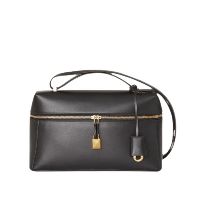 This bag includes two detachable, three-dimensional charms for a touch of personalization. A signature padlock charm reinforces the zipped closure, while the second charm is elegantly placed inside a leather keychain.