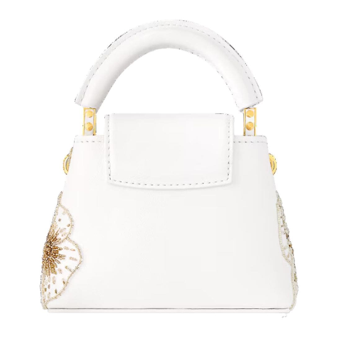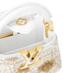 This exceptional edition of the LOUIS VUITTON CAPUCINES NANO is a testament to Louis Vuitton’s artistry and elegance. Featuring a large peony motif meticulously embroidered with tiny beads on pristine white calfskin leather, this piece is both a statement of luxury and a work of art. The exquisite bag is accompanied by a hard-sided presentation box in iconic Monogram canvas, secured with an S-lock closure inspired by historic Louis Vuitton trunks. The box is adorned with a matching peony motif and lined in sumptuous satin, complete with a removable cushion to display and protect the bag.