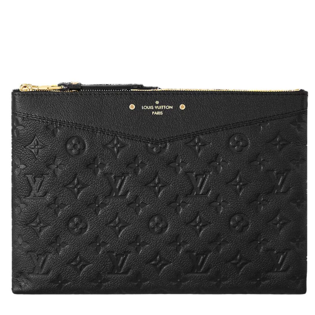 Indulge in the epitome of luxury with the LOUIS VUITTON DAILY POUCH , a timeless accessory crafted from exquisite Monogram Empreinte leather. This sleek pouch features Louis Vuitton’s iconic Monogram pattern embossed on supple-grained cowhide leather in classic black Noir, exuding sophistication at every glance.