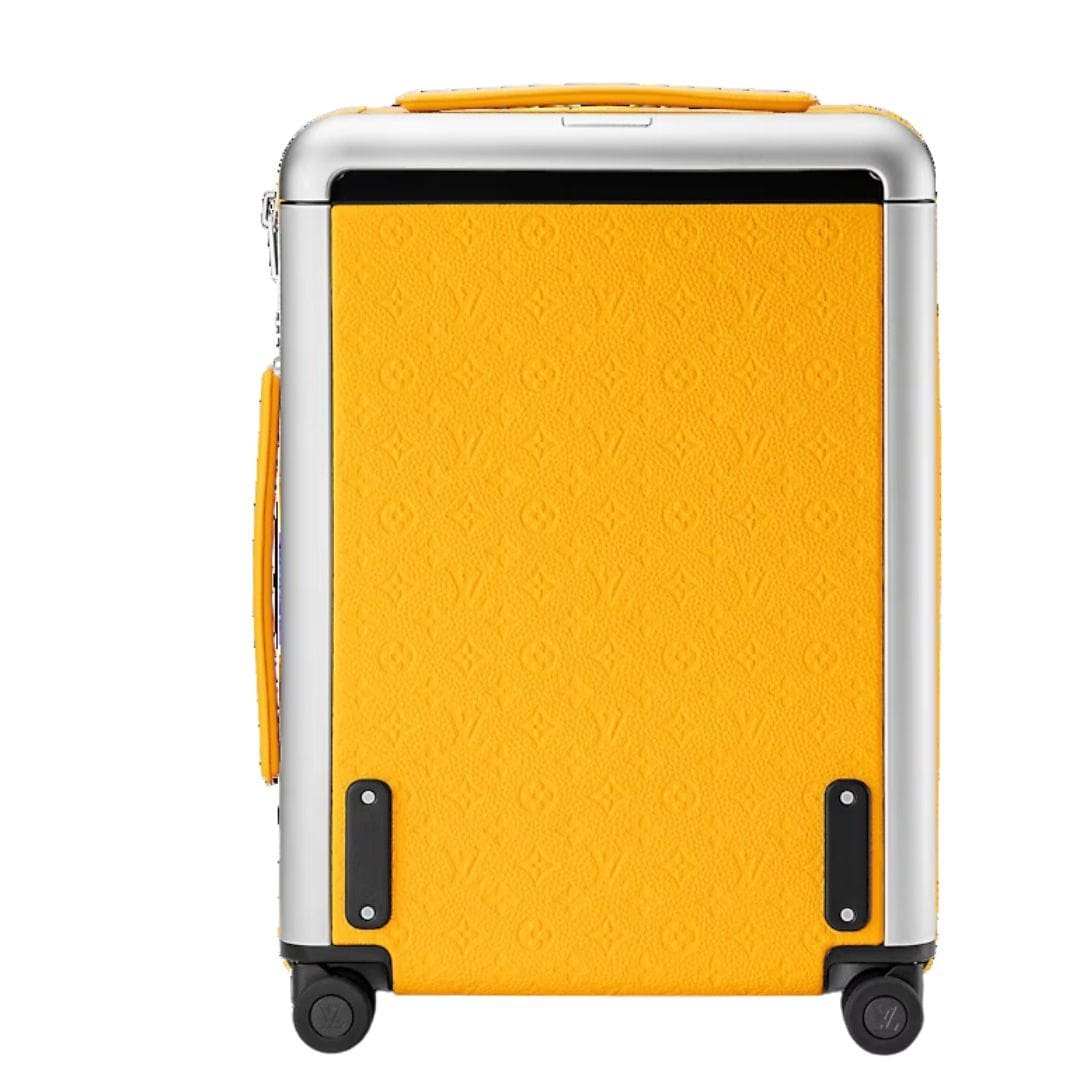 Introducing the epitome of travel sophistication, the LOUIS VUITTON HORIZON 55 rolling suitcase, reimagined for the season in vibrant yellow Taurillon leather intricately embossed with the iconic Monogram motif. Designed to accompany you on your journeys near and far, this cabin-sized marvel marries style with functionality seamlessly.