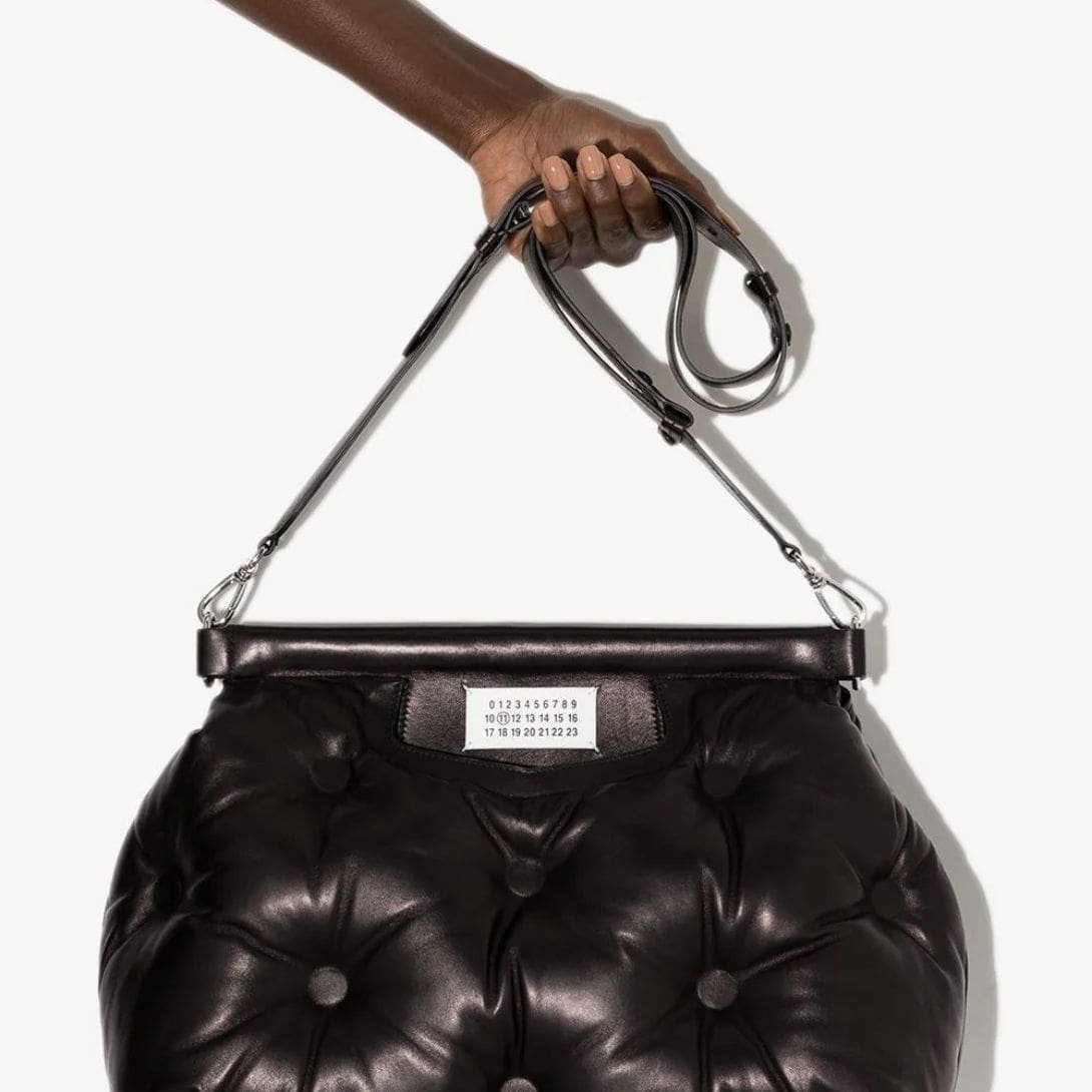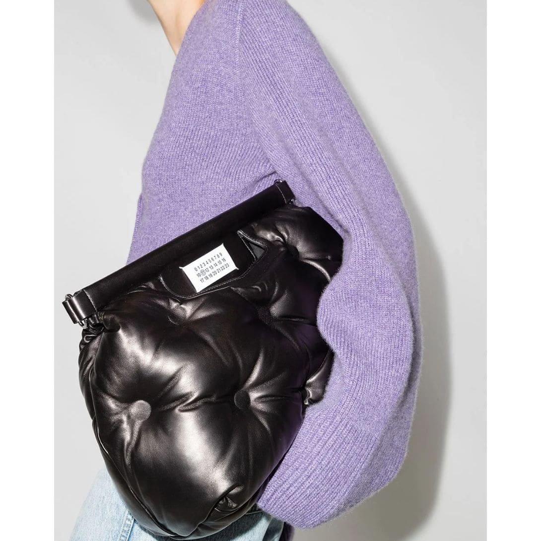 Introduction: The Maison Margiela Medium Glam Slam Classique shoulder bag made its debut in the SS18 show, featuring a quilted effect reminiscent of Matelassé, a style inspired by hand-stitched quilts from Marseille, France. This bag, along with the entire collection, embodies the house’s effortless glamour and comforting aesthetic. The detachable leather shoulder strap adds versatility to its design.