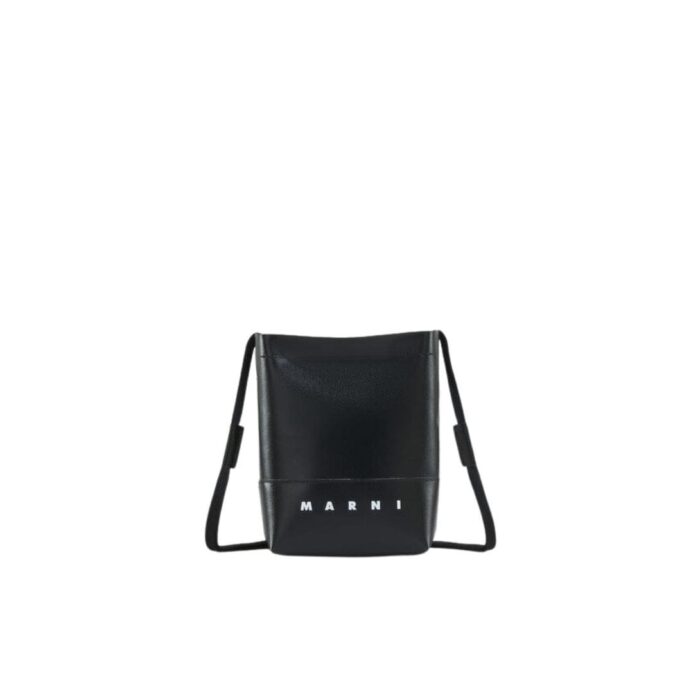 The minimalist design of the bag is punctuated by Marni’s subtle branding, embossed in gold on the front. This discreet logo adds a touch of luxury without overwhelming the overall aesthetic. The Marni Black Crossbody Bag with Shoelace Strap effortlessly combines high-fashion elements with everyday practicality, making it a statement piece that is as functional as it is stylish. Whether you’re dressing up for a night out or running errands, this bag offers a modern and chic solution to your accessory needs.