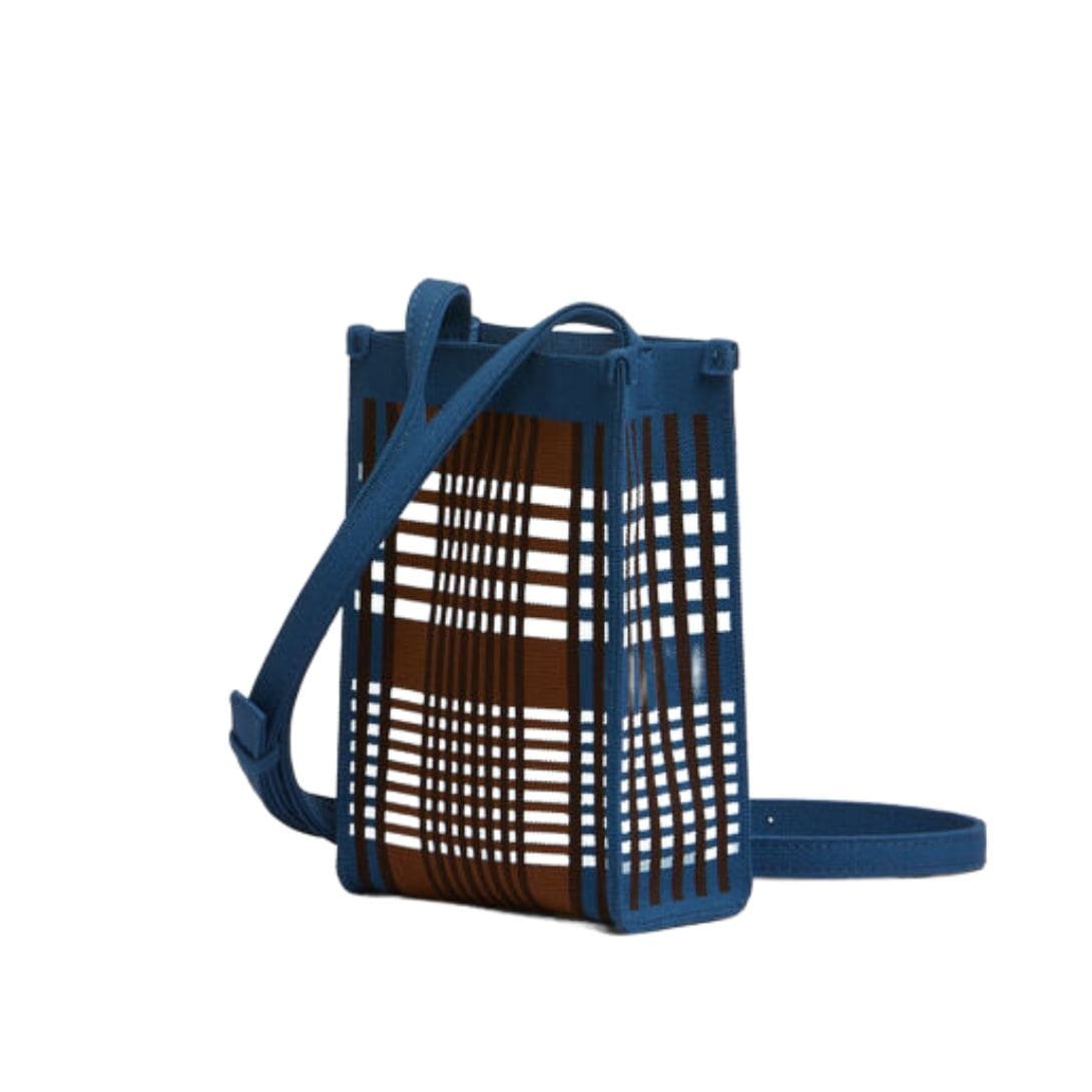 MARNI BLUE AND BROWN JACQUARD CHECK MINI SHOULDER BAG