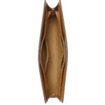 Inside, a microfiber lining with a suede finish provides a plush backdrop for your possessions, ensuring they are kept safe and secure. Care instructions underscore the importance of proper maintenance, advising storage in the protective dust bag in a cool, dry place, away from direct sunlight and friction. It’s recommended to avoid cleaning with soap or solvent and to take precautions against staining or wetting the leather materials.