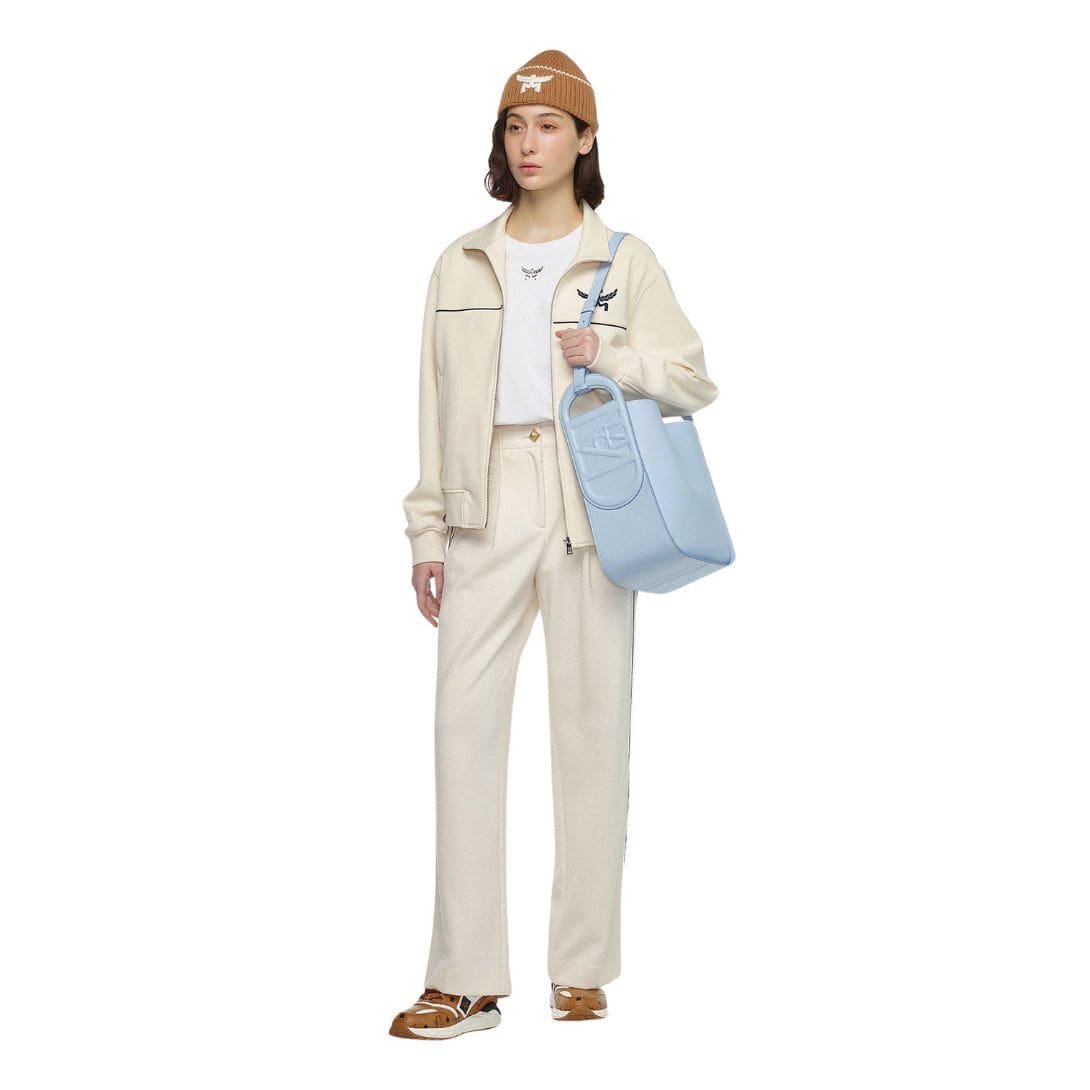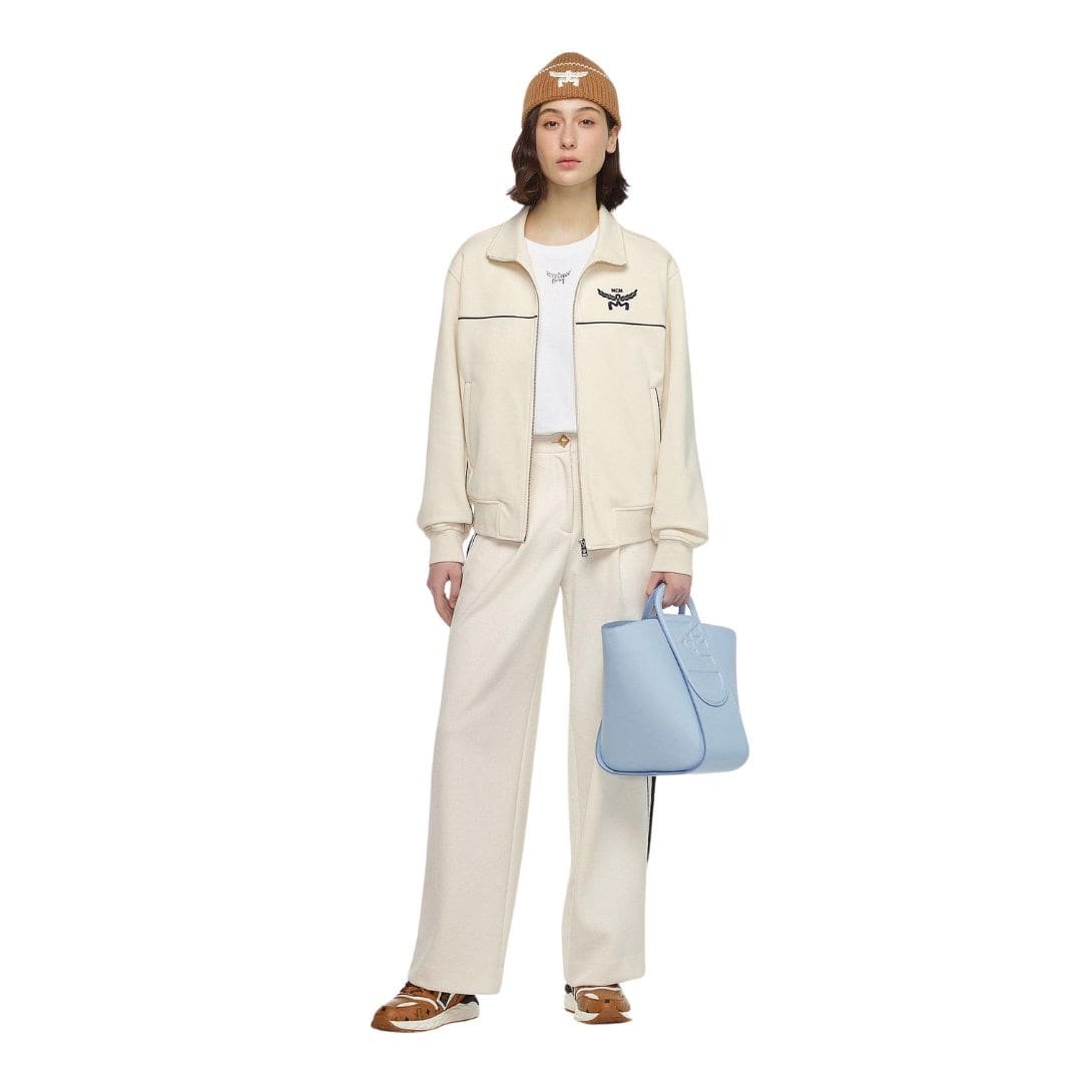 Indulge in the exquisite design of the MCM Large Mode Travia Tote In Spanish Nappa Large.Blue Large Mode Travia tote, where form meets function in a harmonious blend of luxury and practicality. Its sculptural silhouette, defined by handles intricately fashioned with the iconic MCM logo motif, exudes architectural elegance. Crafted meticulously from premium full-grain Spanish Nappa leather, this spacious accessory boasts a trapezoidal shape that offers ample room for storing your most treasured belongings.