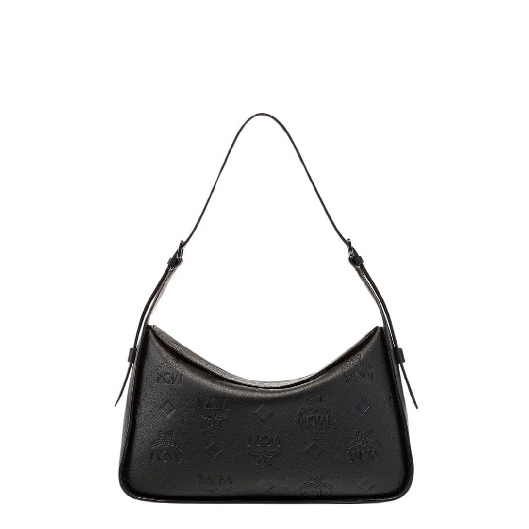 MCM MEDIUM AREN FLAP HOBO BAG IN EMBOSSED MONOGRAM LEATHER BLACK