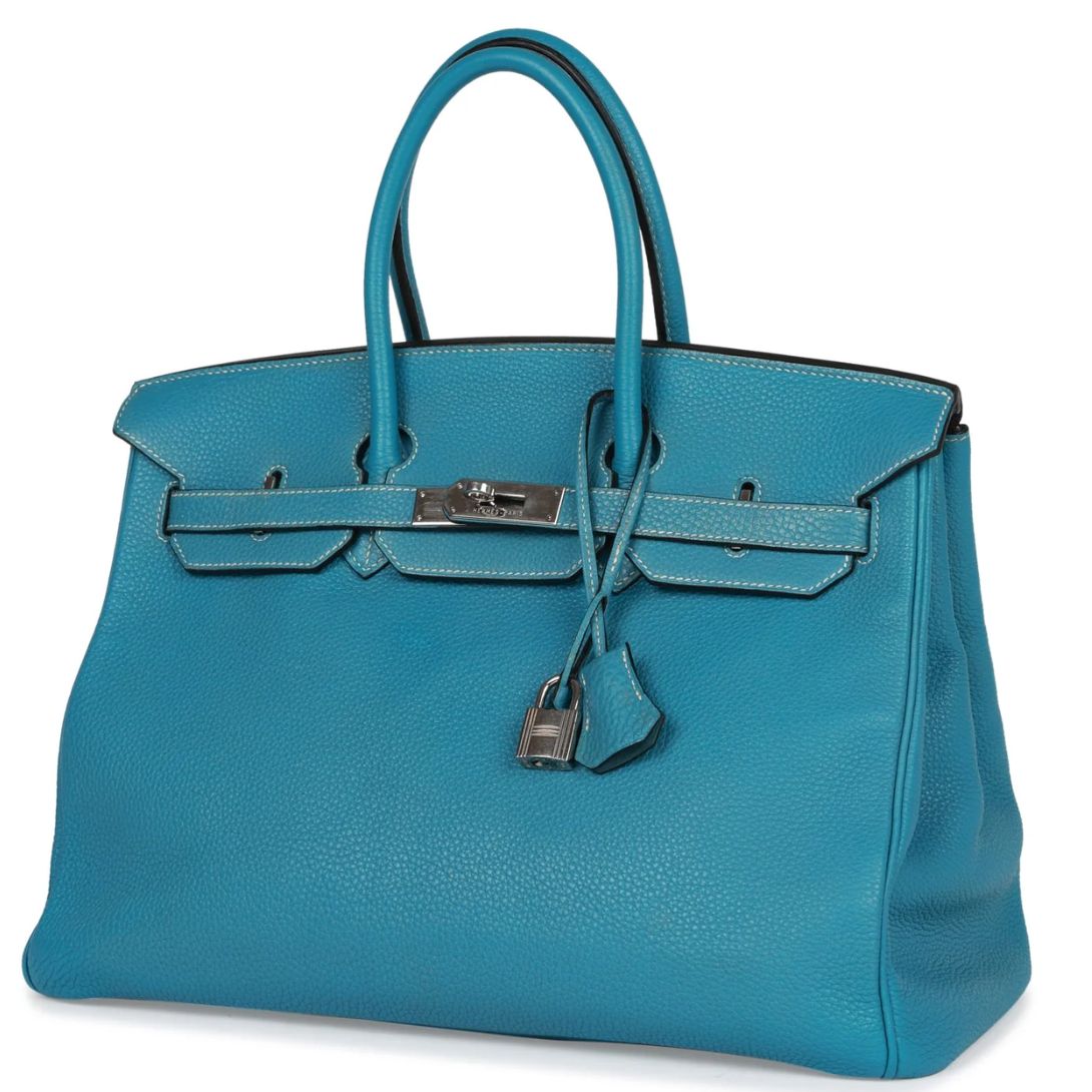 PRE-OWNED HERMÈS BIRKIN 35 BLUE JEAN TOGO PALLADIUM HARDWARE