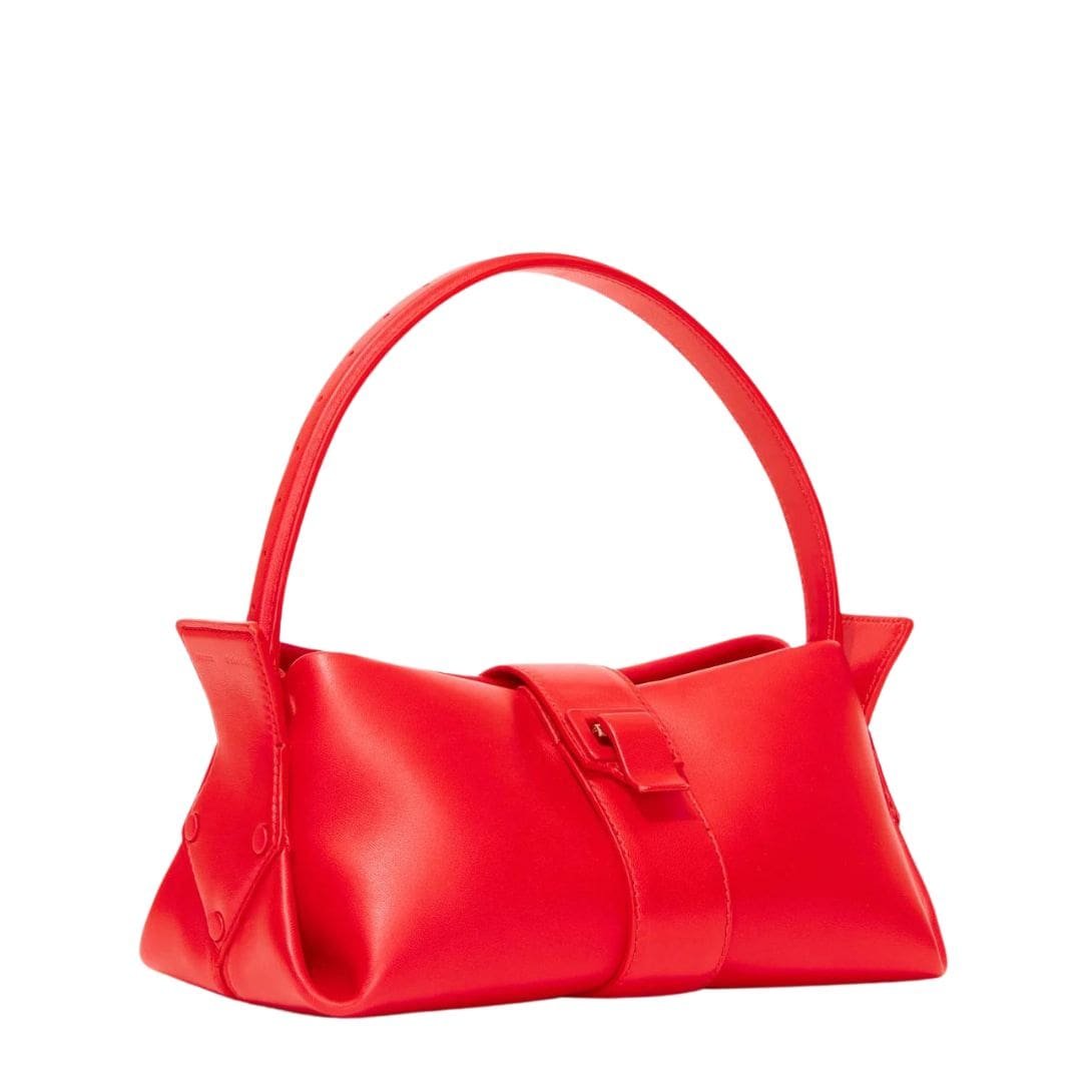 Introducing Proenza Park Shoulder Bag Red. the epitome of sophistication from the Spring 2024 Runway Collection – Look 4. The Park Shoulder Bag emerges as a testament to exquisite craftsmanship, designed to elevate your ensemble with its timeless allure. Meticulously crafted from sumptuous smooth nappa leather, this shoulder bag exudes luxury from every stitch, offering a seamless blend of style and functionality.