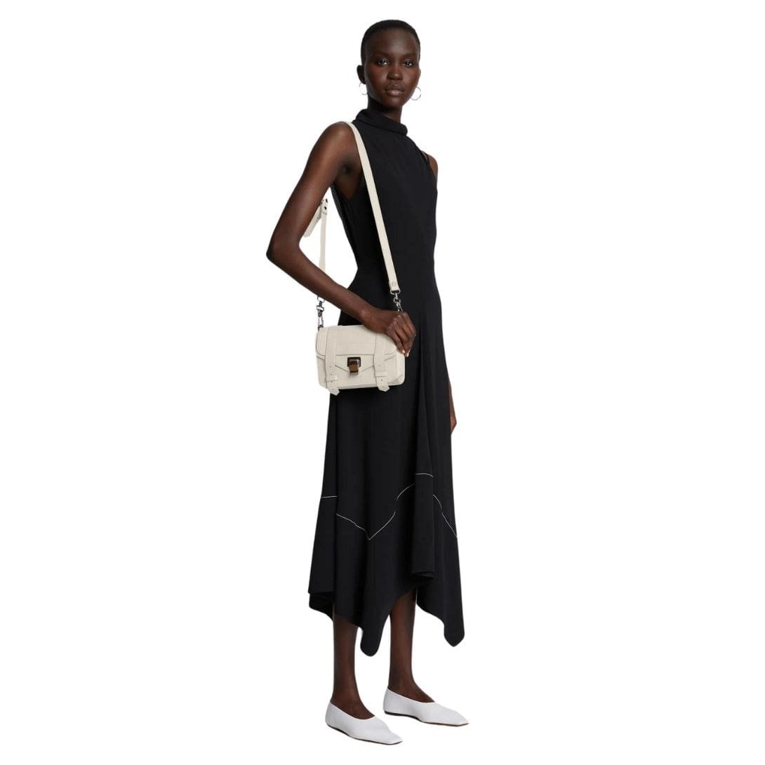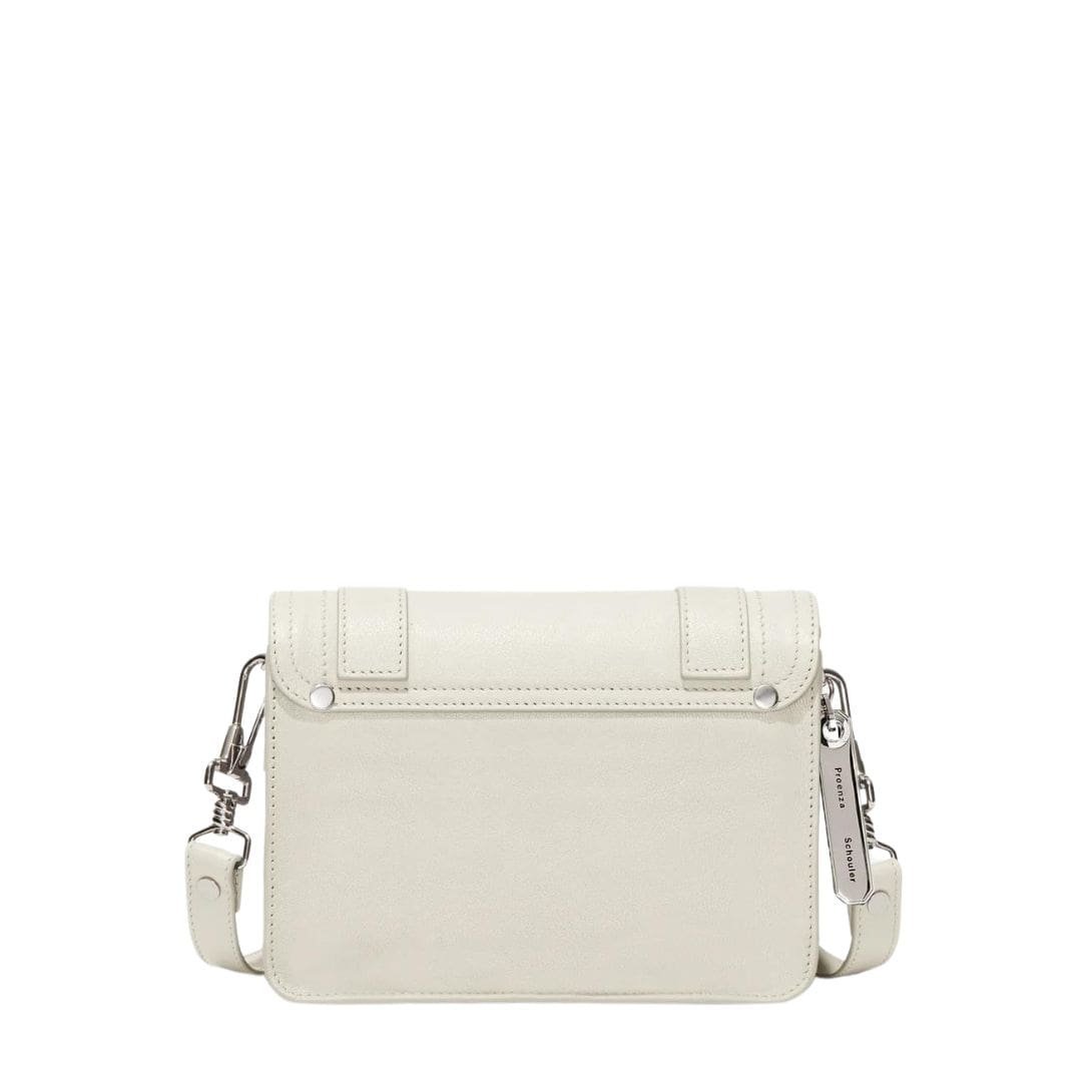 Drawing inspiration from the utilitarian elegance of traditional workwear satchels, the PS1 Mini Crossbody Bag embodies a perfect blend of timeless style and practical functionality. Crafted from luxurious lambskin leather in a chic off-white hue, this iteration of the esteemed PS1 family showcases Proenza Schouler’s dedication to impeccable craftsmanship and contemporary design.