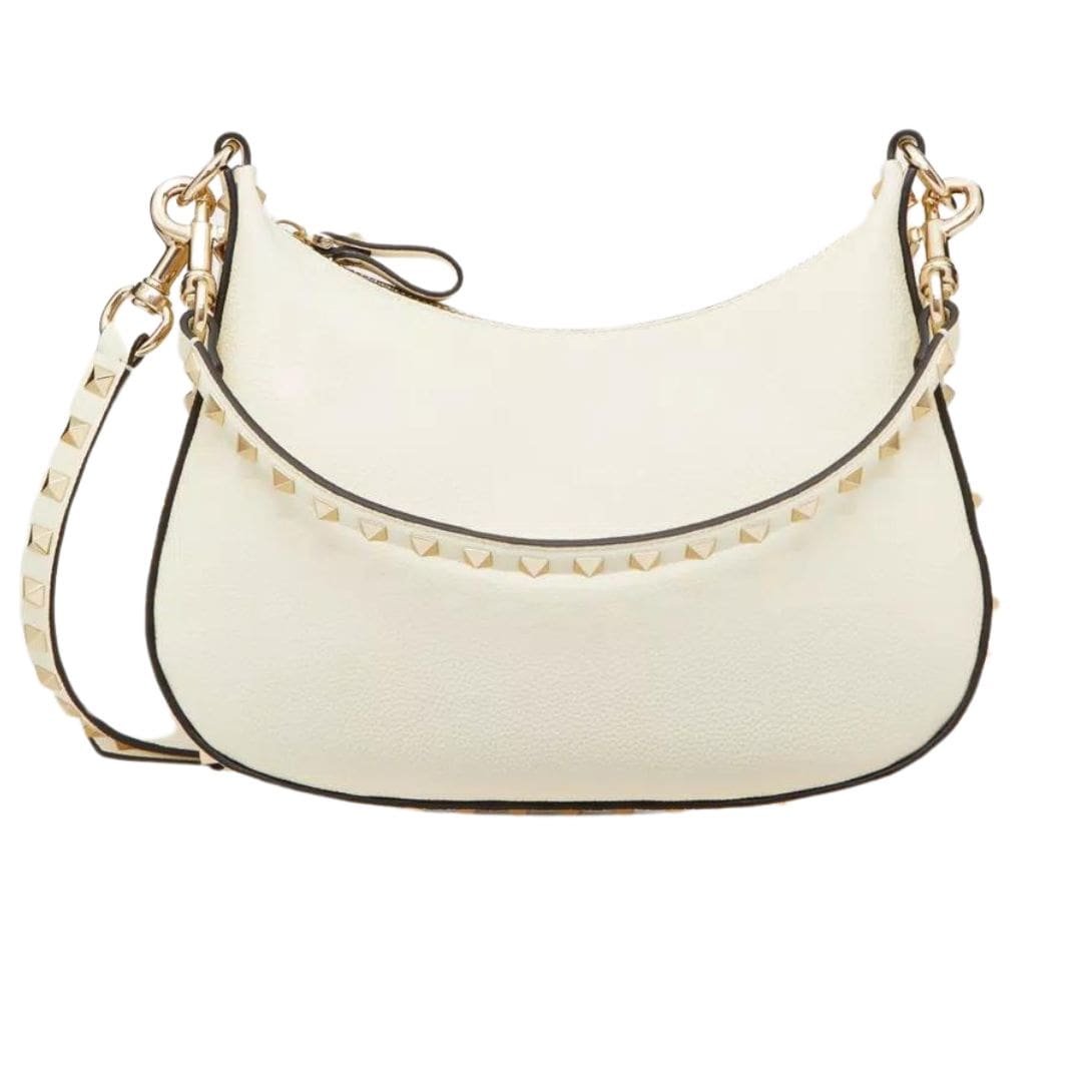 Introducing the Valentino Garavani Rockstud small hobo bag, meticulously crafted from grainy calfskin. Versatile in its design, it offers multiple carrying options: shoulder, crossbody, or handbag, thanks to its removable handle and shoulder strap. Adorned with platinum-finish studs and hardware, this bag exudes a sophisticated allure. The zipper closure ensures security, while the adjustable and removable studded leather shoulder strap adds a touch of edgy elegance. Inside, discover the luxurious leather lining and one slip pocket for convenient organization. With a shoulder strap drop length of 57 cm, this bag offers comfort and style. Dimensions: W25xH20xD4 cm. Made with precision in Italy.