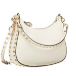 Introducing the valentino small rockstud hobo bag in grainy calfskin.
